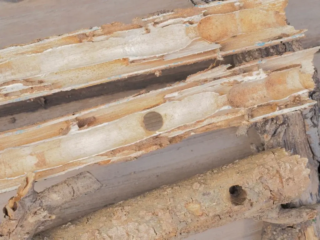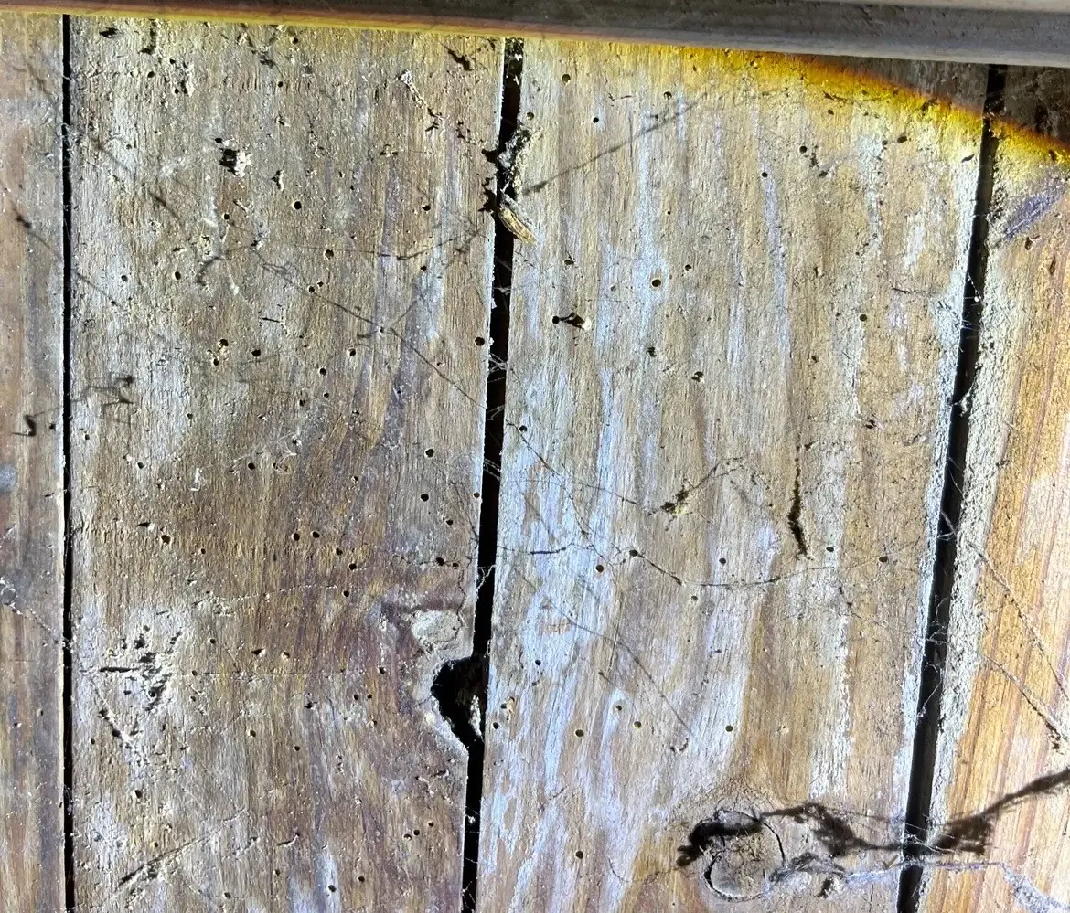 Les insectes à larves xylophages, tels que la vrillette, le capricorne ou le lyctus, fragilisent les éléments porteurs et les zones boisées du bâtiment.